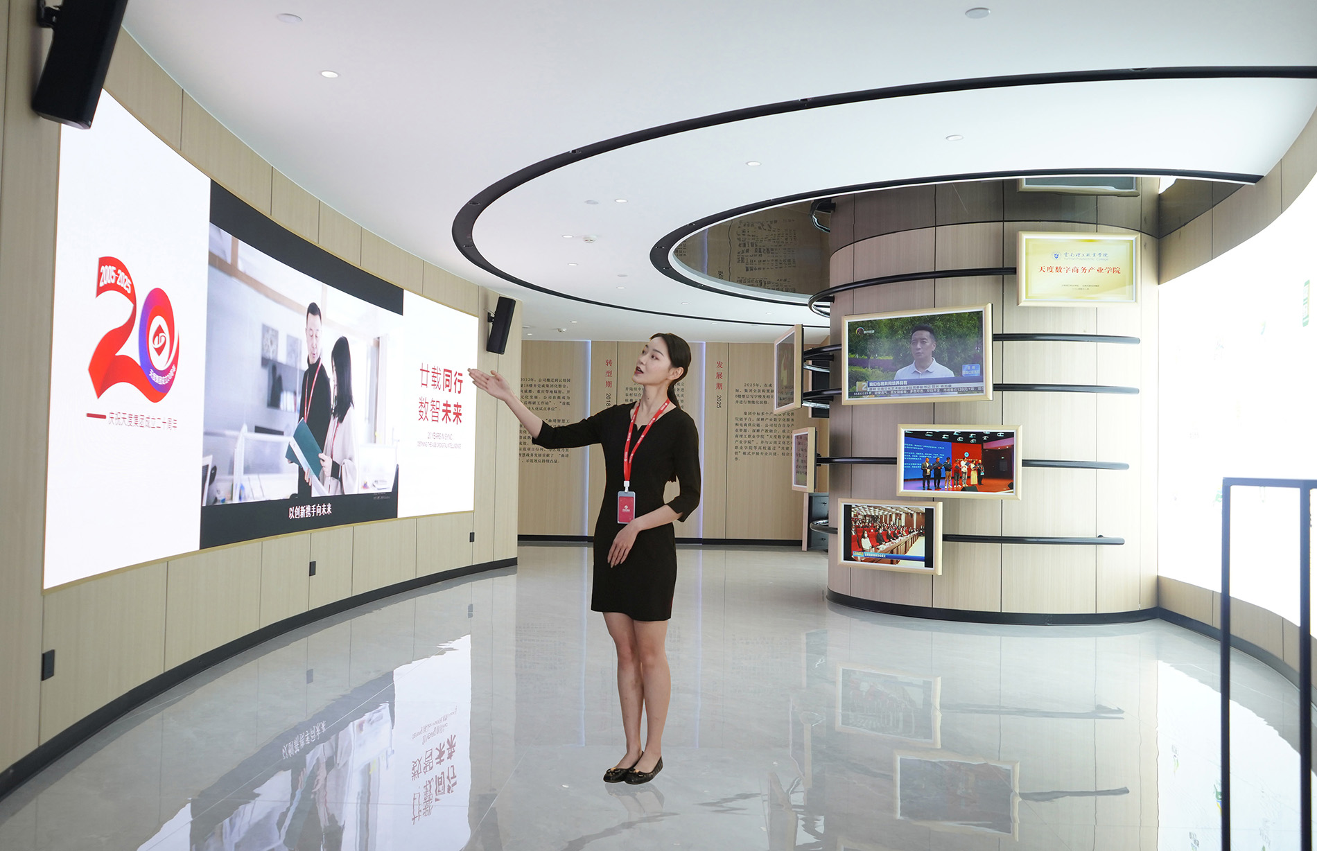 在天度成立二十周年之际,集团在融城优郡A座写字楼8楼购置了整层全新办公空间,并打造成为集数字技术研发中心、电商直播基地、产教融合创新平台等于一体的复合型空间,经过4个月的智能化装修施工,目前新办公室已经全面启用,云纺国际商厦旧址即日起停止使用。