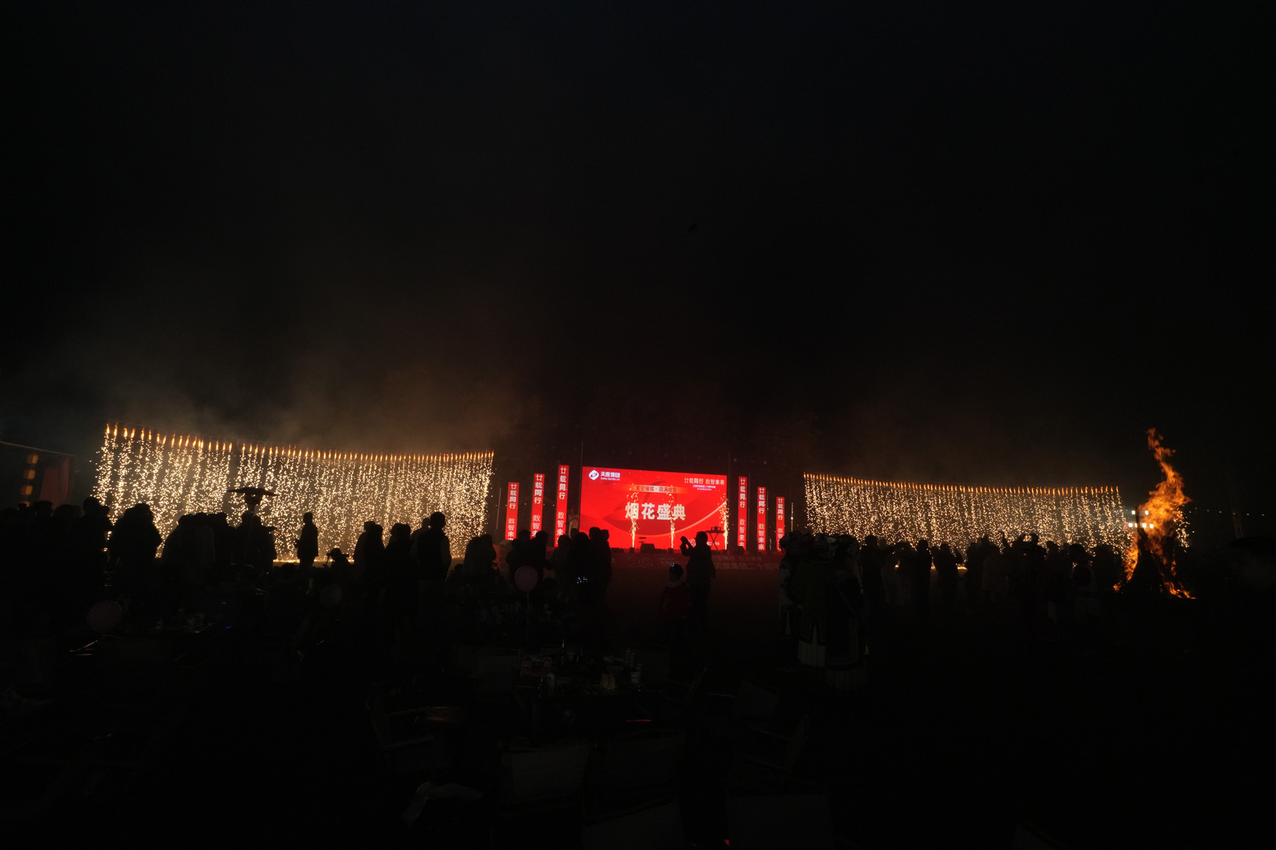 晚上七点半,伴随主持人倒数,一束束流光划破夜空,绚丽的烟花层层绽放,如锦绣般铺满天幕。所有人共同仰望,在这璀璨时刻,许下对天度、对彼此最美好的祝愿。 烟花落幕后,篝火旁温情延续。多位员工与嘉宾即兴上台表演,歌声、朗诵、趣味互动接连不断,为夜晚增添了无数惊喜与感动。