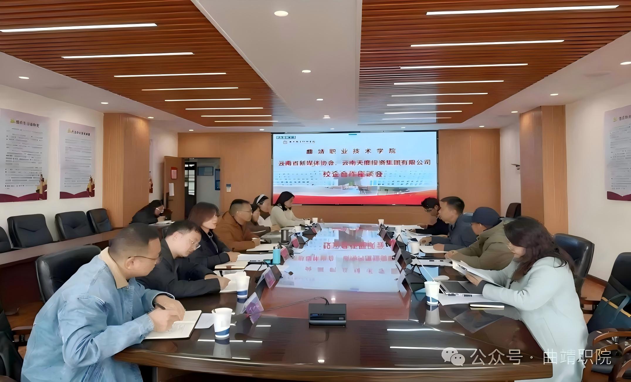 1月22日,曲靖职业技术学院与云南省新媒体协会、云南天度投资集团有限公司举行校企合作座谈会,三方围绕共建“新媒体产业学院”达成战略共识。合作旨在打造集人才培养、产业服务、创新创业于一体的产教融合新平台,为区域数字经济发展注入新动能。曲靖职业技术学院副院长陈斌,招生就业与对外合作处、经济贸易系、信息技术系支部及电子商务专业负责人参加会议。